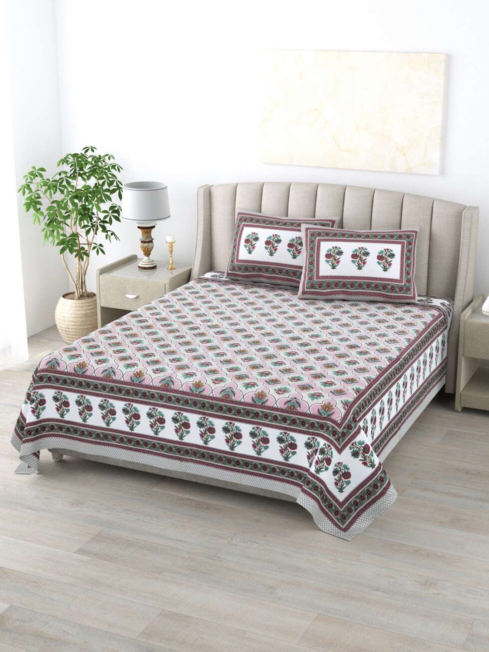 100% Pure Cotton Traditional Printed Bedsheet for Double Bed King Size Bedsheet with 2 Pillow Covers